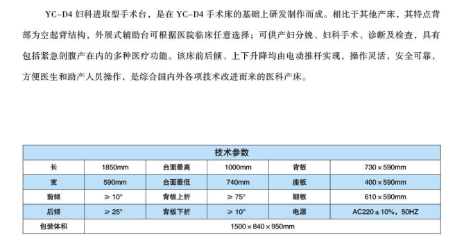 - 产品名称: 广西YC-D4电动手术台(妇科进取型)