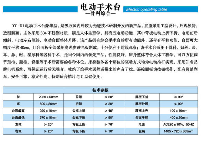 - 产品名称: 河南D1电动手术台(豪华型)(骨科综合手术床)