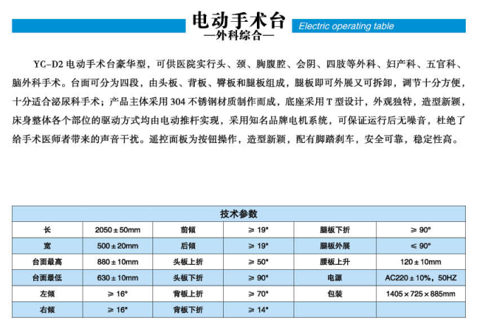 - 产品名称: 四川D2电动手术台(豪华型)(外科综合手术床)