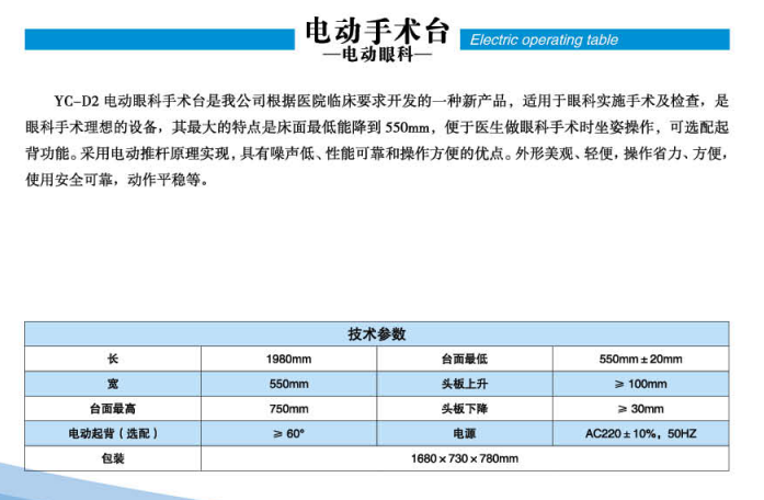 - 产品名称: 云南YC-D2电动手术台(眼科型)